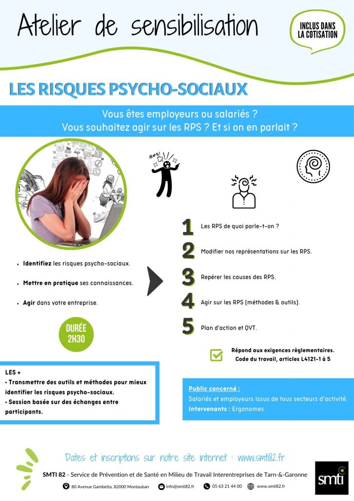 Nous vous proposons un atelier de sensibilisation sur les risques psycho-sociaux.